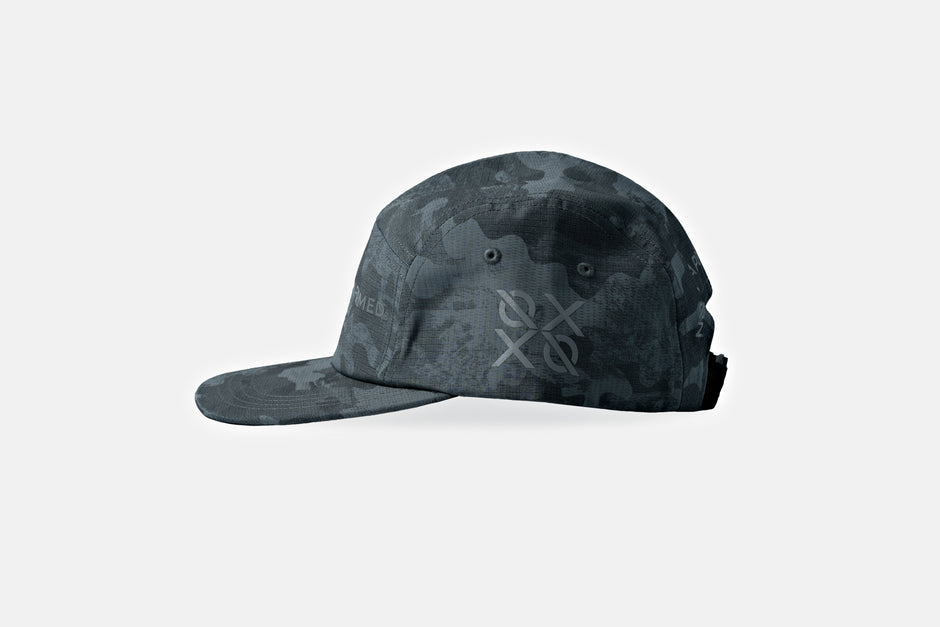 The 3M Reflective Camo Hat in a textured camo gray nylon shell, pairing the same sleek design with a rugged new finish. Built with a flat brim, black buckle strap, and tonal eyelets, it maintains a sharp silhouette while introducing a distinct pattern.